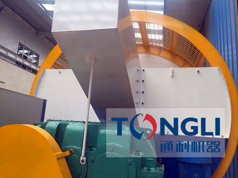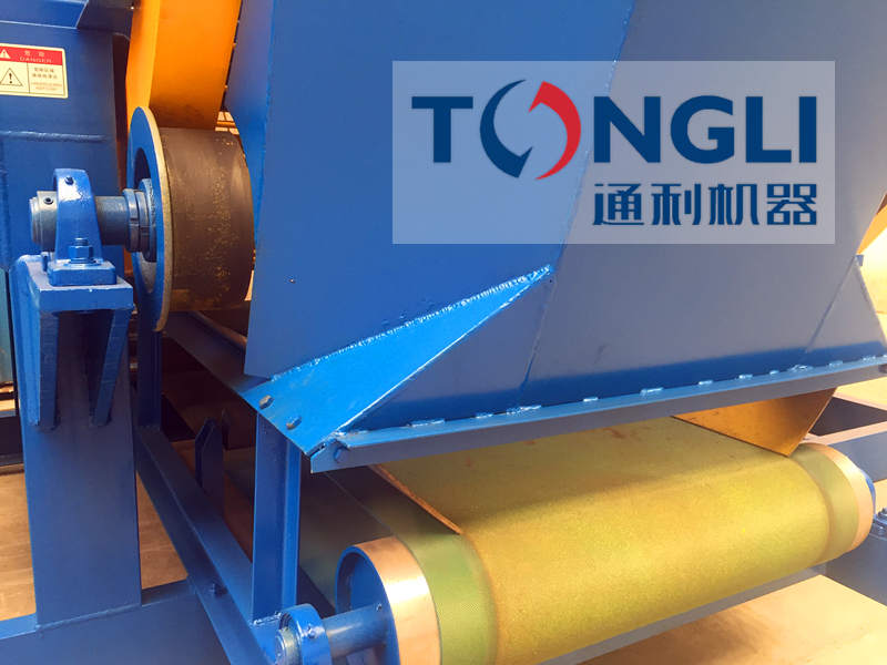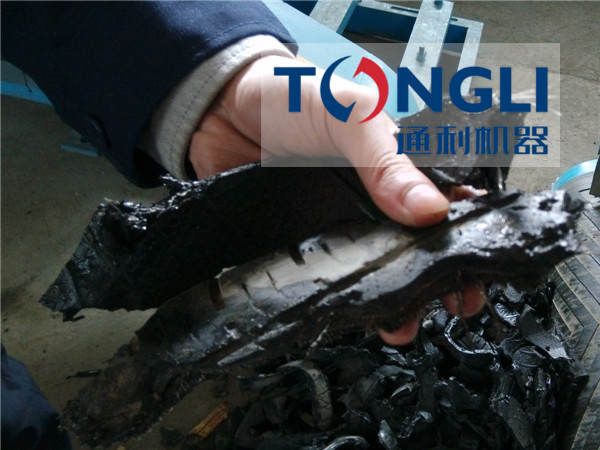 輪胎撕碎機 工作原理是:電機通過傳動系統(tǒng)帶動破碎室里的刀盤轉(zhuǎn)動,然后將已經(jīng)去除胎唇鋼圈的外徑≤Φ1200mm的輪胎用輸送機送入該設(shè)備的入料斗,輪胎經(jīng)由入料斗進入破碎室,刀盤以剪切和撕裂的方式對輪胎進行破碎,在破碎過程中,小于或等于50×50的物料從圓網(wǎng)篩中漏出,進入后續(xù)工序;于50×50的物料經(jīng)圓滾篩返回到破碎室進行循環(huán)破碎,直至膠塊小符合要求后排出破碎機。