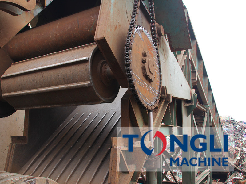 通利機(jī)器廢鋼破碎處理生成產(chǎn)線的預(yù)壓系統(tǒng)采用重型型鋼焊接架體,的傾斜角度,溜槽表面襯有耐磨合金襯板,溜槽寬度與主機(jī)進(jìn)料口相等;壓輥軸采用質(zhì)耐磨合金鋼,可根據(jù)主機(jī)承載負(fù)荷小調(diào)整進(jìn)料間隙,確保均勻喂料,避免廢鋼瞬間扯入,造成主機(jī)電機(jī)的過度載,輥輪速率由PLC控制,控制系統(tǒng)會(huì)依據(jù)主破碎機(jī)的工作情況進(jìn)行自動(dòng)調(diào)整,避免主機(jī)過度裝填,保障設(shè)備平穩(wěn)遠(yuǎn)行,限度的提升產(chǎn)能。