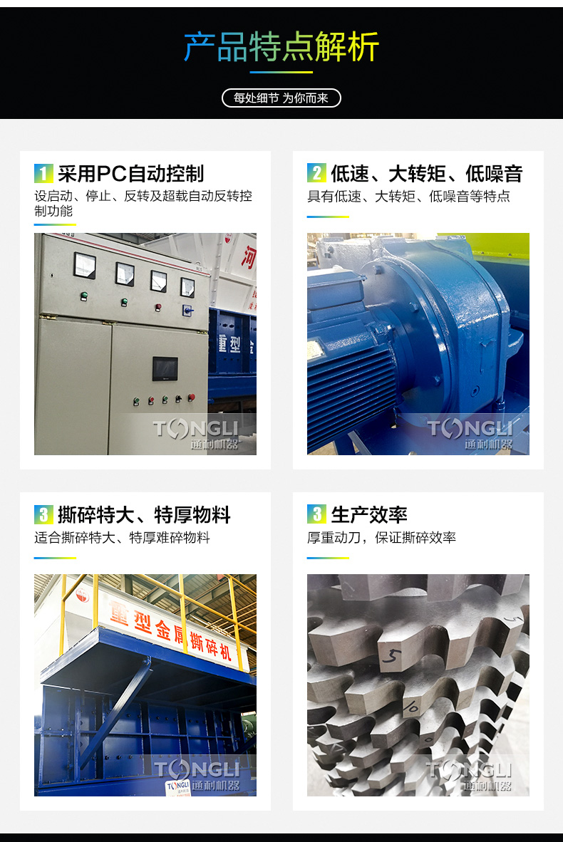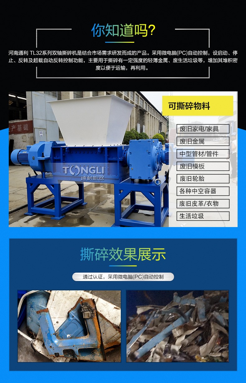 雙軸撕碎機是結合市場需求而成的產(chǎn)品。采用微電腦(PC)自動控制,設啟動、停止、反轉及載自動反轉控制功能,主要用于撕碎有一定強度的輕薄金屬、廢生活垃圾等,增加其堆積密度以便于運輸,再利用。