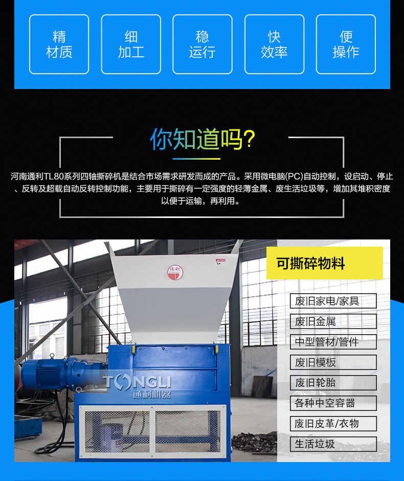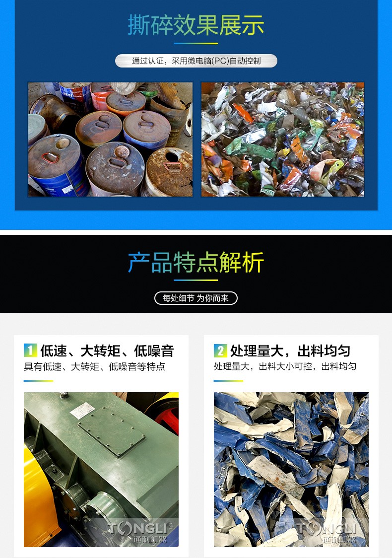 四軸撕碎機(jī)是結(jié)合市場(chǎng)需求而成的產(chǎn)品。采用微電腦(PC)自動(dòng)控制,設(shè)啟動(dòng)、停止、反轉(zhuǎn)及載自動(dòng)反轉(zhuǎn)控制功能,主要用于撕碎有一定強(qiáng)度的輕薄金屬、廢生活垃圾等,增加其堆積密度以便于運(yùn)輸,再利用。